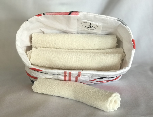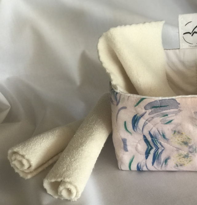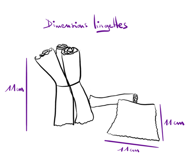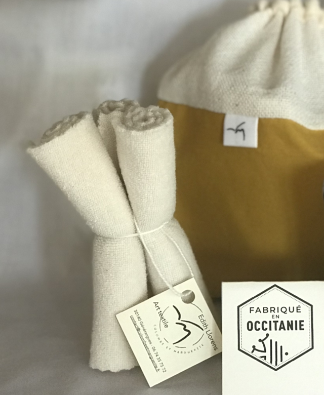 lot de 3 lingettes lavables 100% coton bio, fabriquées en France. Paniers et housse de lavage vendus séparément.
